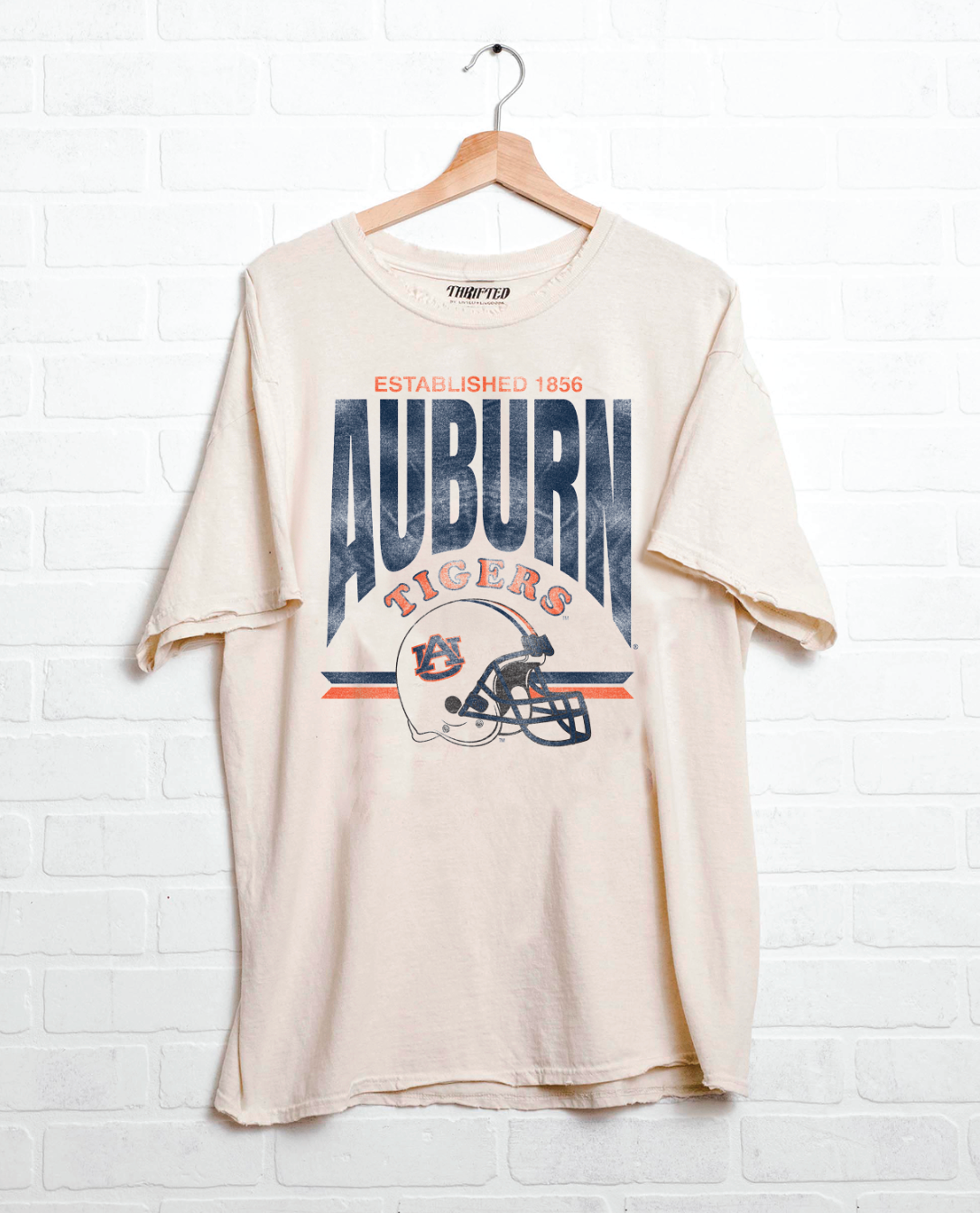 Auburn Tigers Established Date Helmet Off White Thrifted Tee