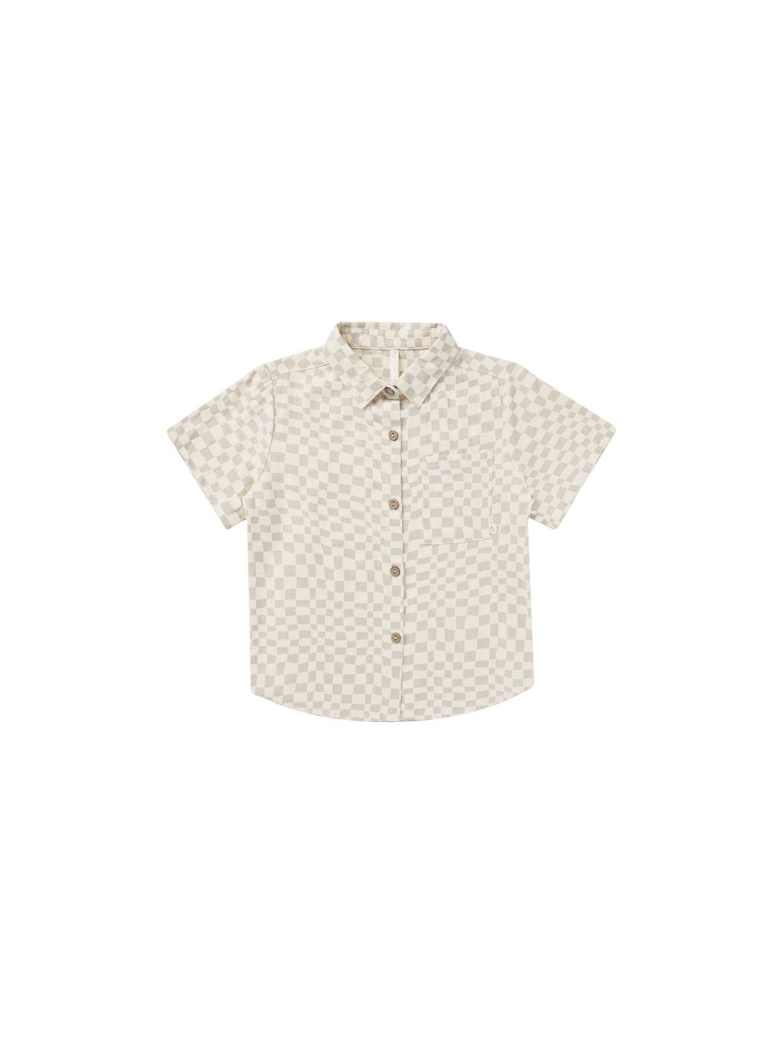 COLLARED SHORT SLEEVE SHIRT || DOVE CHECK
