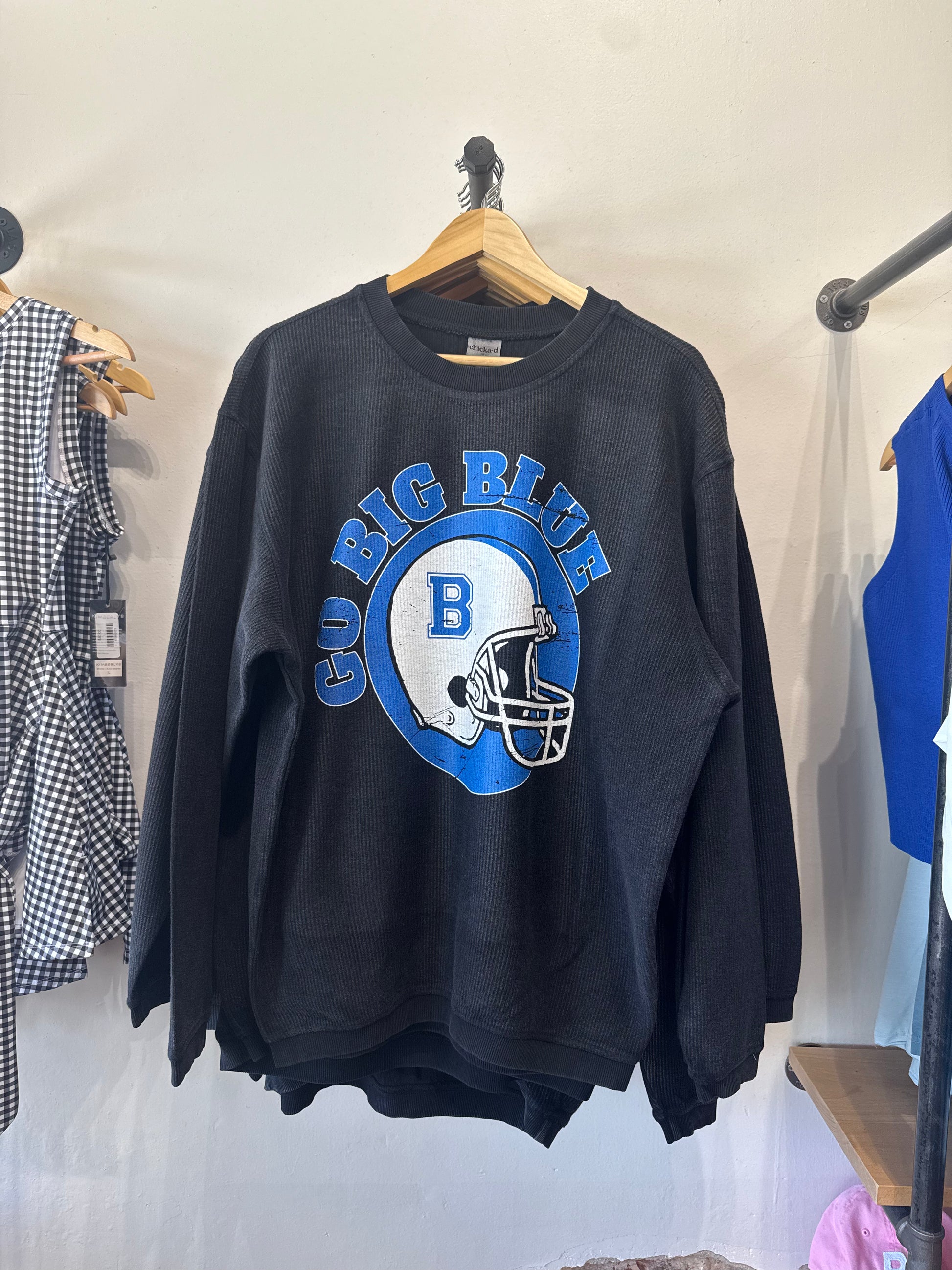 GO BIG BLUE corded crew black